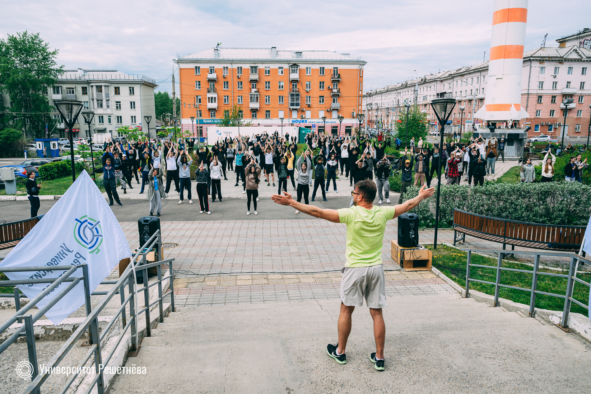 Ярким спортивным флешмобом Университет Решетнёва отметил IV Всероссийскую акцию «Выбираю Чистый воздух». Утро 20 мая на площади Котельникова началось необычно — здесь собралось порядка 200 человек разных возрастов, объединённых желанием вместе сделать зарядку и поддержать экологическую инициативу.