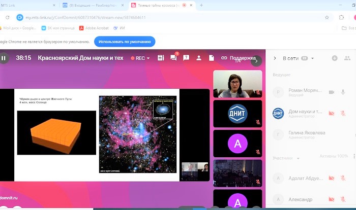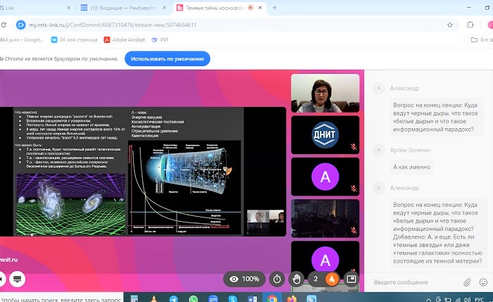 Темные тайны Вселенной. Продолжается лекционный курс для участников проекта «Космическая одиссея юниор»