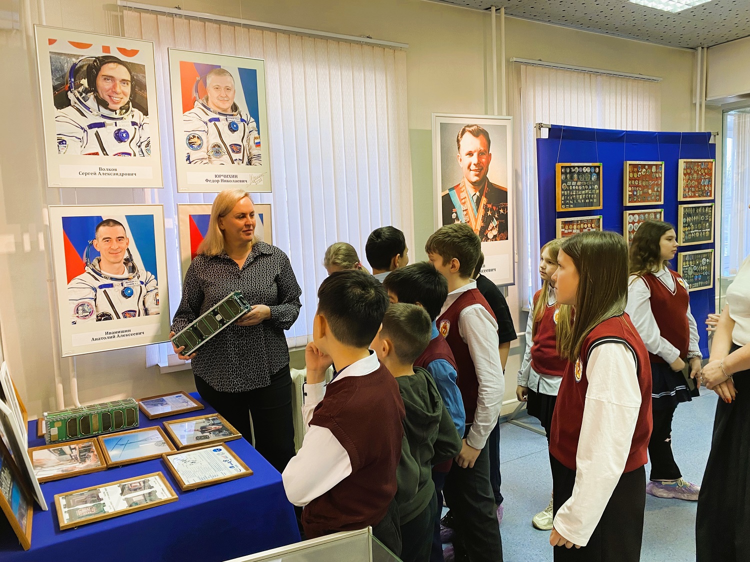 Ребята не только познакомились с историей отечественной космонавтики, но и увидели современные разработки вуза. Наибольший интерес у школьников вызвал стенд с малыми космическими аппаратами формата CubeSat — проекта ReshUCube. У ребят была возможность подержать в руках макеты спутников, чтобы оценить их реальные размеры и конструкцию.