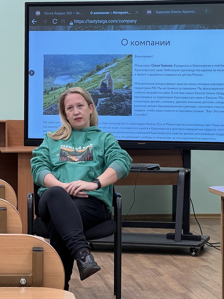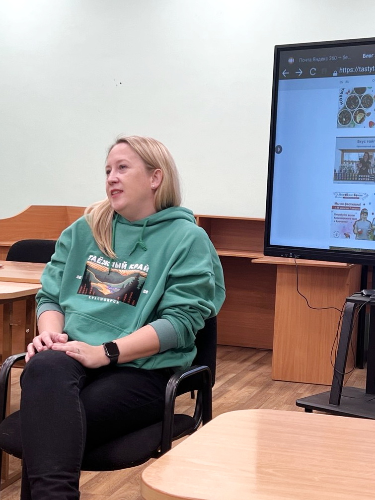 В Университете Решетнёва продолжаются встречи студентов с ведущими практиками региона. 28 ноября в рамках дисциплины «Маркетинговые коммуникации» у студентов группы БМР22-01 Института менеджмента и международного бизнеса (ИММБ) состоялся открытый диалог с основателем компании «Вкус Тайги» Олесей Ушаковой. Организатором встречи выступила преподаватель кафедры менеджмента Евгения Корепанова.