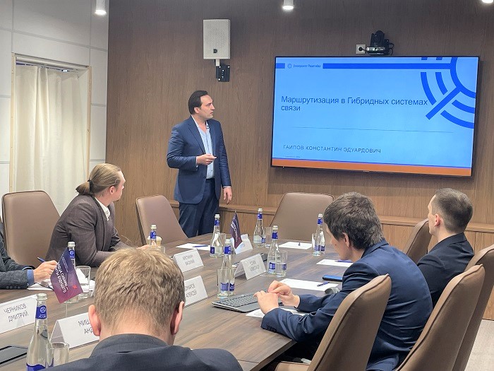 Всего для обсуждения было представлено восемь сообщений, в том числе презентация разработки Университета Решетнёва «Маршрутизация в гибридных сетях связи», подготовленная и.о. завлабораторией «Спутниковые телекоммуникационные системы» Константином Гаиповым. Работа по этому проекту ведется по техническому заданию компании АО «ГЛОНАСС», с которым вуз заключил соответствующий договор.