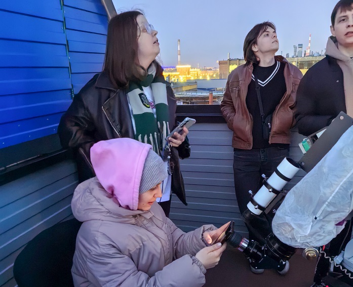 27 марта 2026 г. погода, наконец, позволила провести телескопические наблюдения Луны и планет в учебной обсерватории Университета Решетнёва. Участниками наблюдений стали студенты группы БИГ22-01