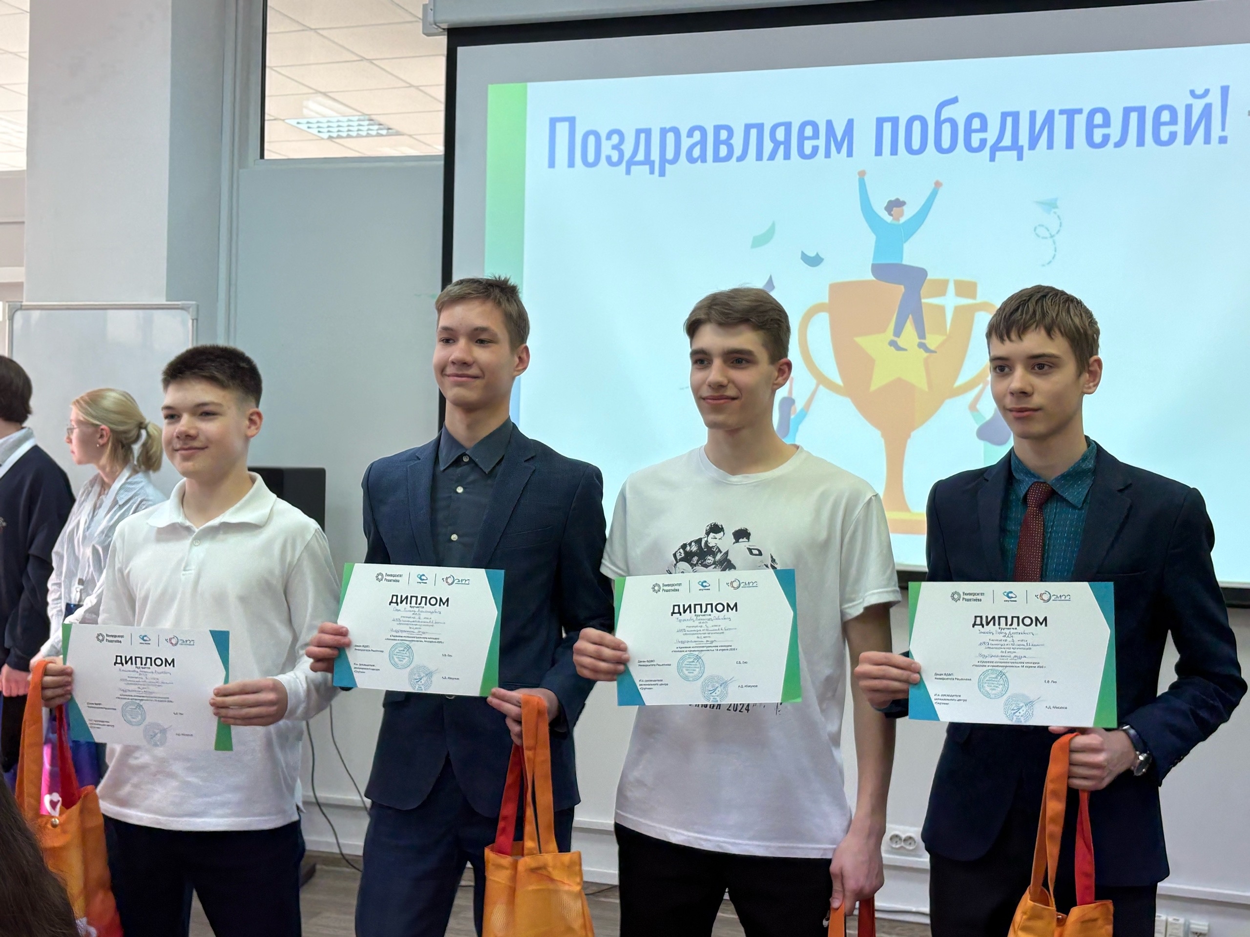 - Я в восторге от турнира «Человек и промышленность»! Задания не как на обычных контрольных — тут надо было и думать, и фантазировать. Было интересно отвечать про природные ресурсы нашего края и про известных изобретателей. Особенно выделяется раунд, когда мы разгадывали, что лежит в «Чёрном ящике». Мы с командой советовались, выдвигали версии — в итоге даже угадали! Понравилось работать в команде и делиться идеями. И здорово, что никто не остался без награды: все получили сертификаты, наши учителя — благодарственные письма, а победители — дипломы и крутые призы. И еще, самое главное, мы теперь более подробно знаем об Университете Решетнева, и будем рассматривать, как вариант для поступления. Очень вдохновляющий опыт, хочу повторить! – делится впечатлениями участник команды Богучанской школы № 1 Артем Эбель