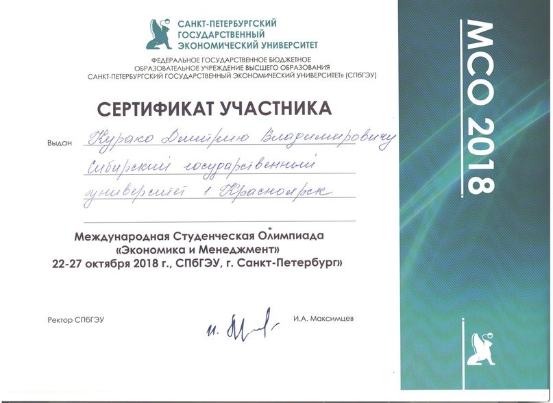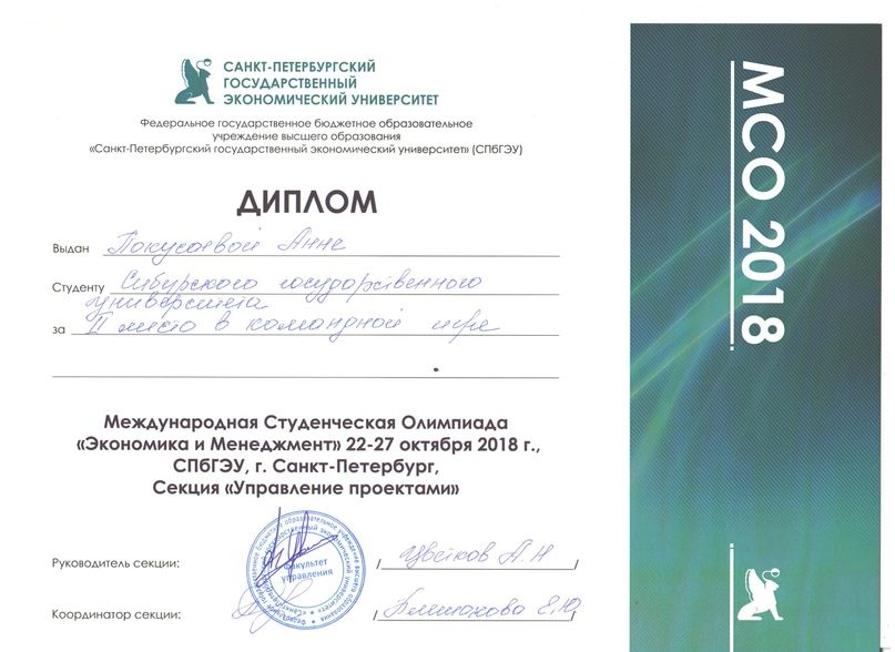 Ранее мы писали о том, что двое студентов нашего университета Инженерно-экономического института (ИЭИ) – Дмитрий Курако и Анна Покусаева – вошли в число призеров международной олимпиады «Экономика и менеджмент – 2018», которая проходила в Санкт-Петербурге, заняв второе место в командном зачете.
