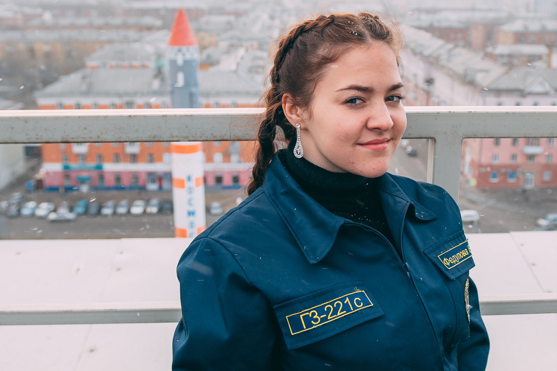 Она носит красное худи с большими белыми буквами #Вернулись, все время улыбается, бегло говорит по-английски. Катя Федулова - студентка института гражданской защиты Луганского университета им. В. Даля