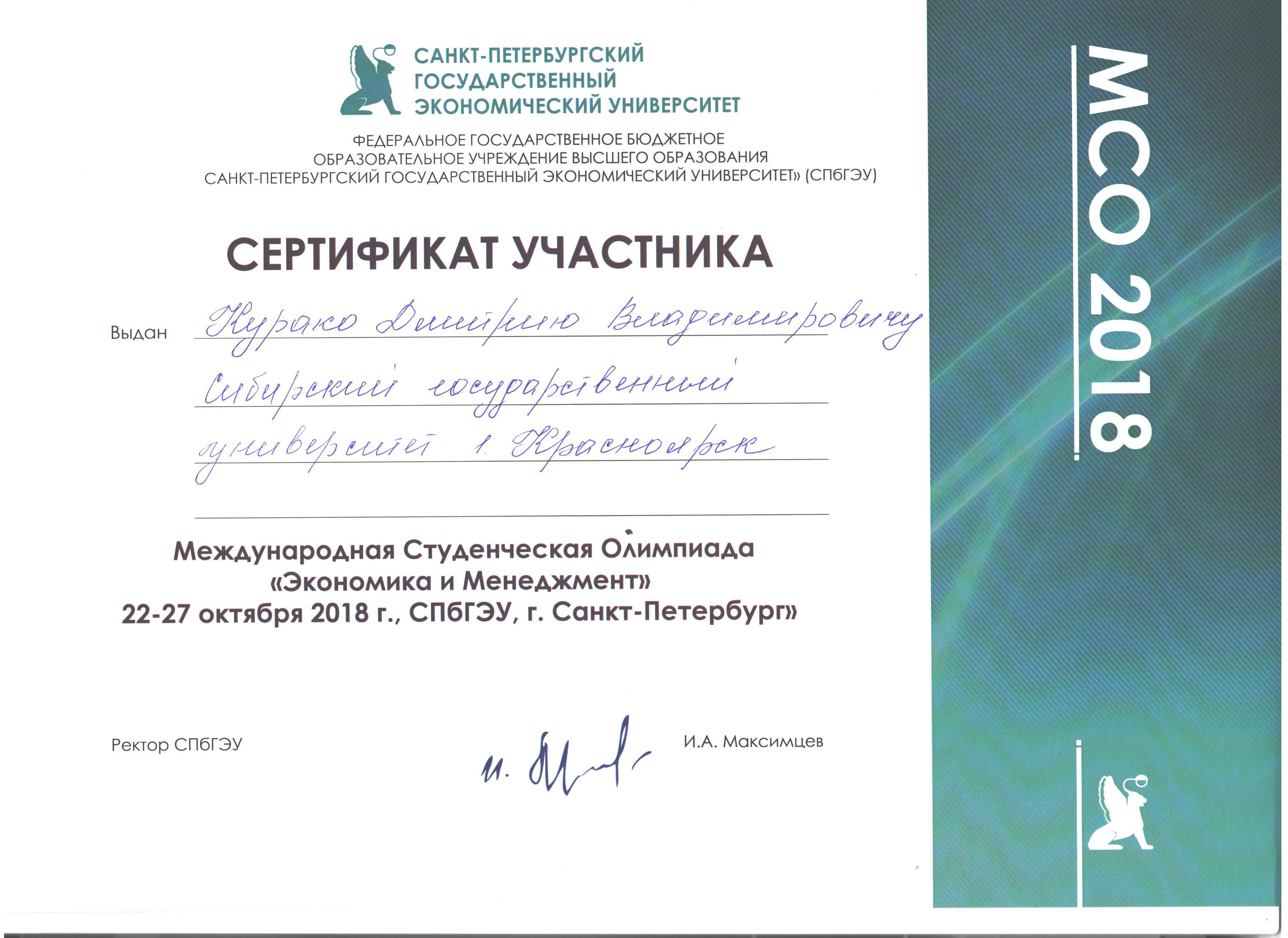 Также Марина Алексеевна отметила, что Дмитрий Курако является участником-ветераном олимпиады «Экономика и менеджмент»: