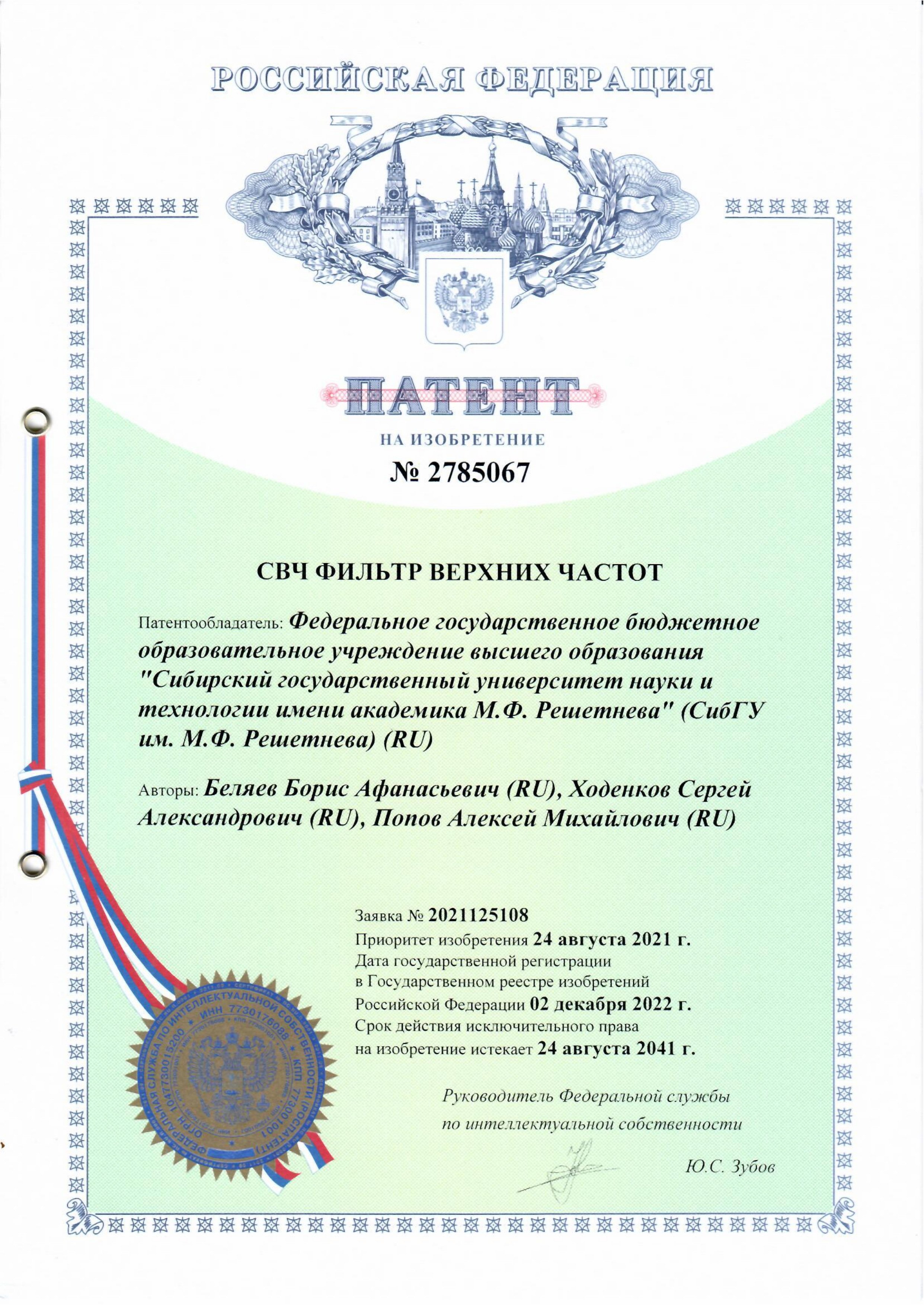 Беляев Б.А., Ходенков С.А., Попов А.М.